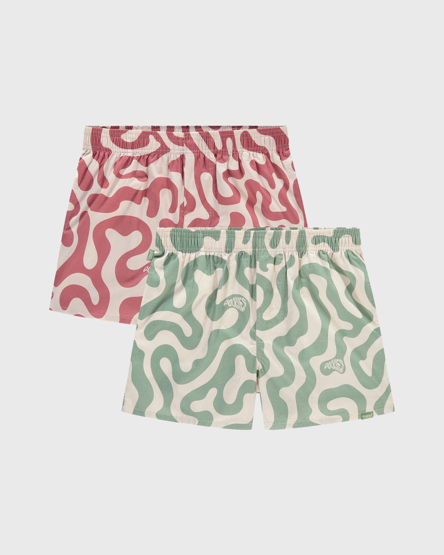 2 Pack Swirls Boxers Pockies. Wie kent het niet? Jij? Lees dan maar even snel door!<br/>Pockies is het fantastische onderbroekenmerk wat je oude, versleten boxers doet vergeten. Deze onderbroeken zijn van 100% organisch, zacht katoen gemaakt, waardoor jij nooit meer oncomfortabel op je werk, op school, of gewoon op de bank hoeft te zitten.<br/>Elk model van deze onderbroeken is voorzien van een unieke print en van handige steekzakken aan de zijkant, die ook wel pockets of pockies worden genoemd ;). Hierdoor kun je op je gemak in je onderbroek met je telefoon in je zak naar de camping-wc lopen, terwijl iedereen denkt dat jij in een leuke fashionable short flaneert (wat ook zo is natuurlijk!)<br/>Pockies zorgt voor de leukste prints en de vetste samenwerkingen. Dan is zo'n 2 pack al helemaal geweldig! En al zeker deze met Swirls print! Haal hem snel bij Burned Sports! Waar wacht je nog op?<br/>