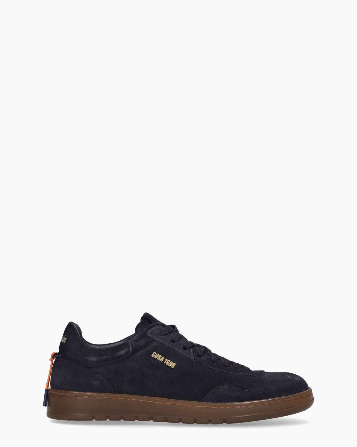Luxe sneakers voor heren Guga BU3520 uit de collectie van het Italiaanse merk Barracuda. Dit model heeft een bovenzijde van zacht donkerblauw vintage gebrusht suède. De binnenkant is in badstof uitgevoerd en voorzien van een uitneembaar voetbed. Geborduurde Barracuda-logo's vind je op de tong en op het hielstuk. De bruine rubberen zool is