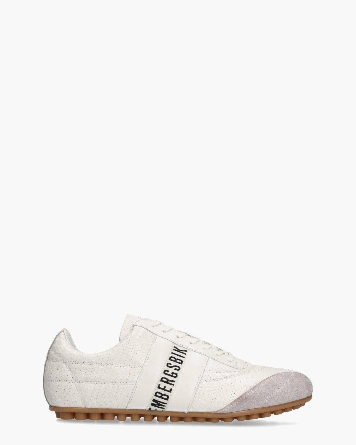 Deze Bikkembergs 30509 herensneakers combineren een minimalistische look met een sportieve basis. Het witte doorgestikte leren bovenwerk met all-over perforaties geeft de sneakers een luxe uitstraling. De stoffen band met merklabel en branding op de tong maken het ontwerp direct herkenbaar. Witte katoenen veters zorgen voor een