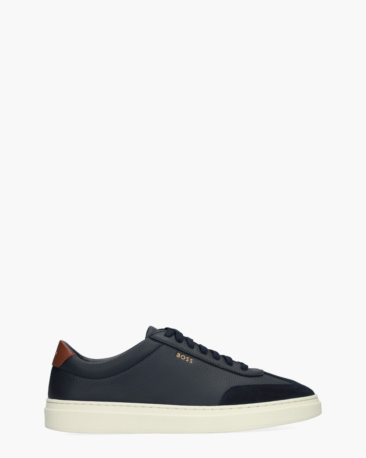 De herensneakers Kieran van het lifestyle label BOSS laten zien hoe stijl en comfort samenkomen in een tijdloos design. Het donkerblauwe leren bovenwerk met gestructureerde afwerking krijgt een verfijnde touch door de donkerblauwe suède neus. Binnenin zorgen de stoffen voering en het uitneembare voetbed voor langdurig draagcomfort. De