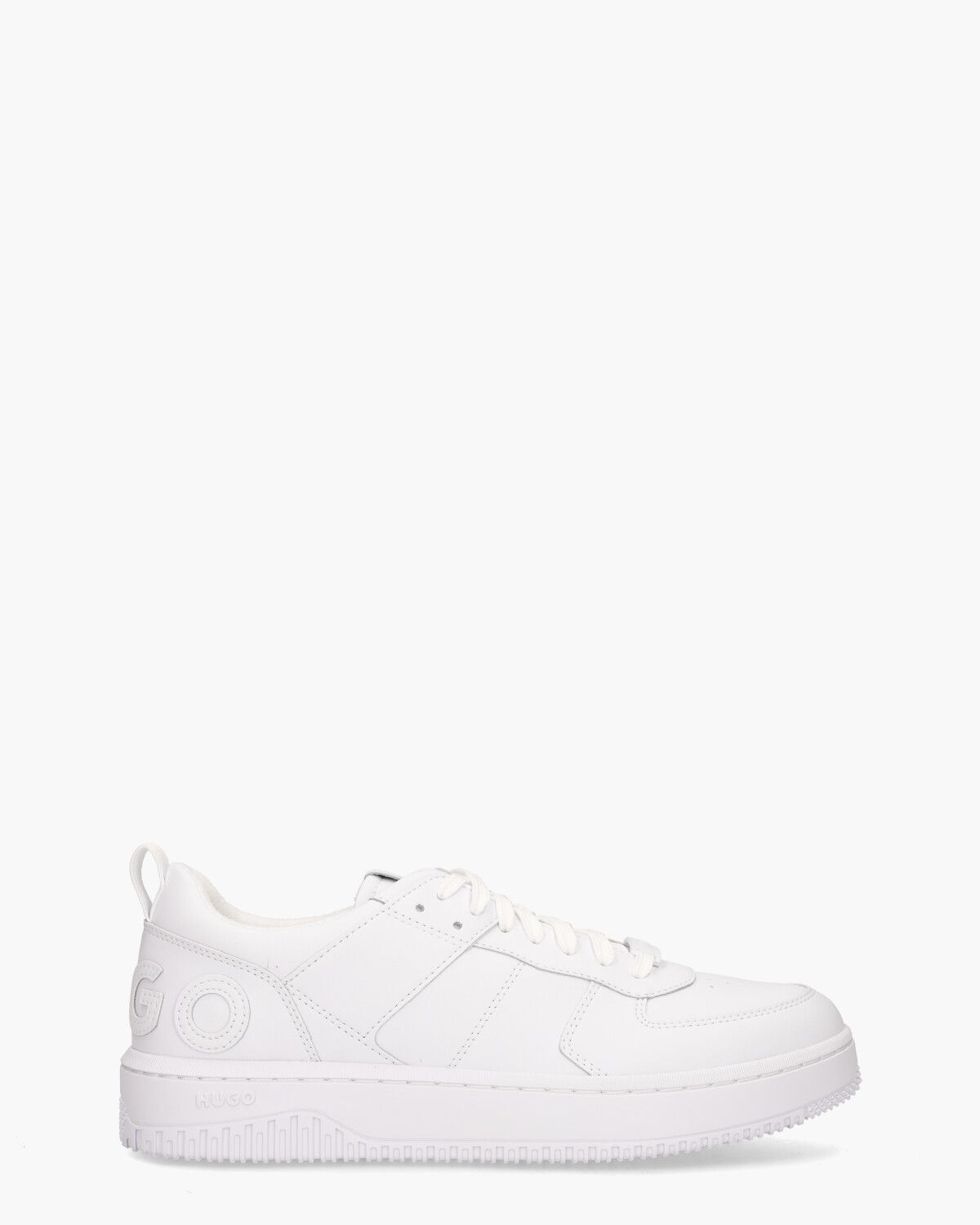Sneakers voor heren Kilian uit de collectie van het lifestyle label BOSS. Deze retro basketbal geïnspireerde herensneaker heeft een upper van wit leer. De binnenkant is van comfortabel badstof gemaakt. Opvallend is het oversized BOSS-logo op het hielstuk. Op het zijpaneel, de tong en op de zool van dit vetermodel is nog een merkaccent