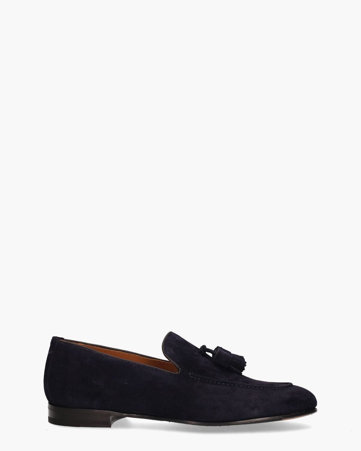 Classic loafers voor heren X1231 uit de collectie van het Spaanse merk Calce. Deze volledig handgemaakte herenschoen heeft een bovenwerk van zacht suède in een donkerblauwe tint. Extra preppy zijn de donkerblauwe flosjes op de wreef. De binnenkant is van leer gemaakt en is voorzien van een vast voetbed. De hiel is verstevigd en dankzij het