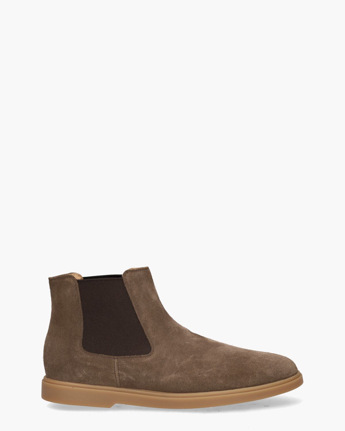 Chelseaboots voor heren 1669 uit de collectie van het merk Carlos Santos. Dit model heeft een upper van suède in een taupekleurige tint. De binnenkant is in leer met een uitneembaar voetbed uitgevoerd. De beige rubberen zool geeft de schoenen een extra sportieve look. De donkerbruine elastische bewerking opzij zorgt ervoor dat je de booties