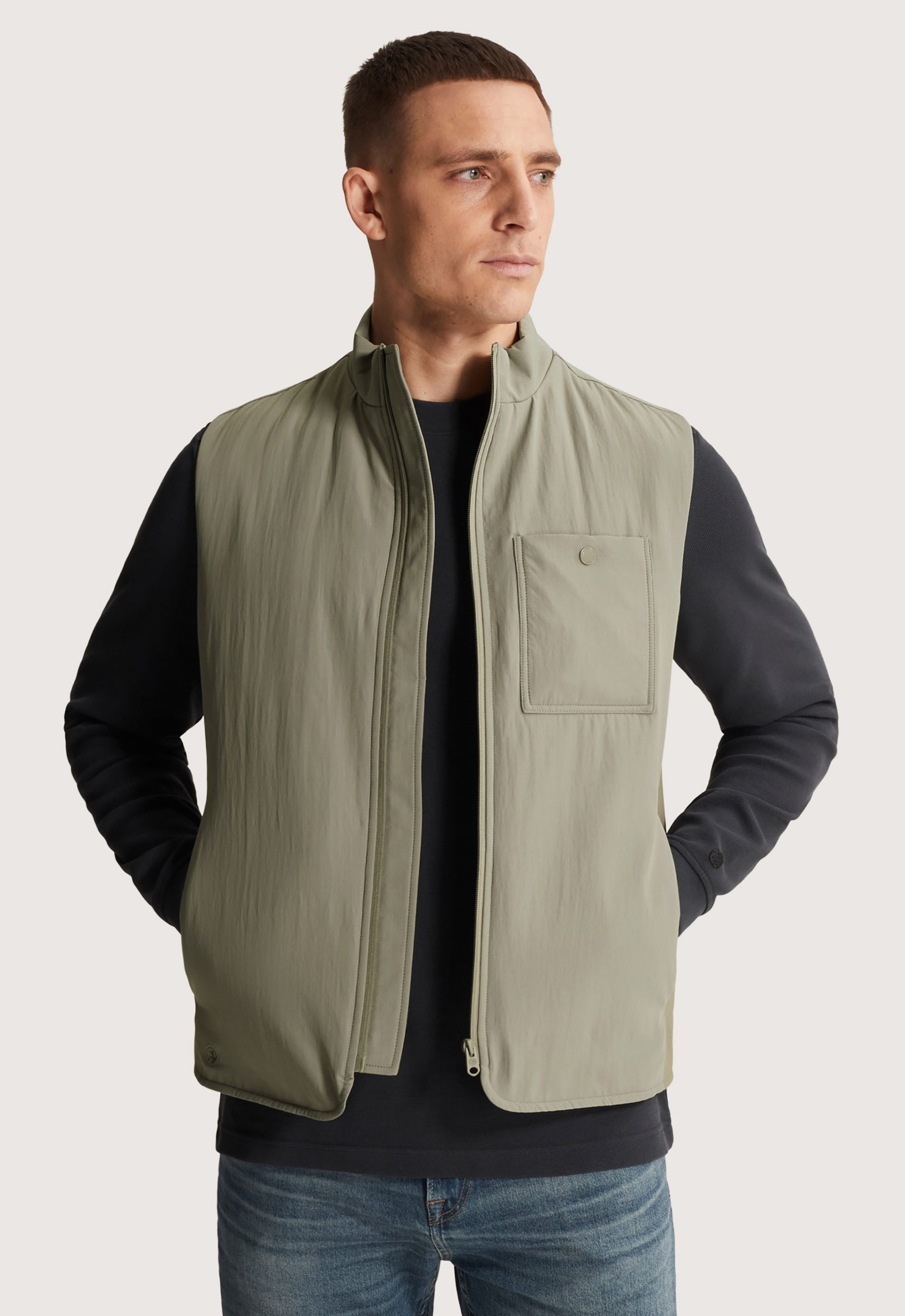 Dit is de CBW2602140 Light Padded Bodywarmer van het merk Cast Iron. Deze Bodywarmer heeft een comfortabele pasvorm en is gemaakt van 100% gerecycled polyester. Het design is voorzien van een praktische ritssluiting en heeft een stijlvolle opstaande kraag voor extra warmte. Met zijn drie handige zakken, waaronder sluitbare borstzakken en voorzakken met drukknopen en ritsen, biedt deze bodywarmer voldoende opbergruimte voor essentiële items.