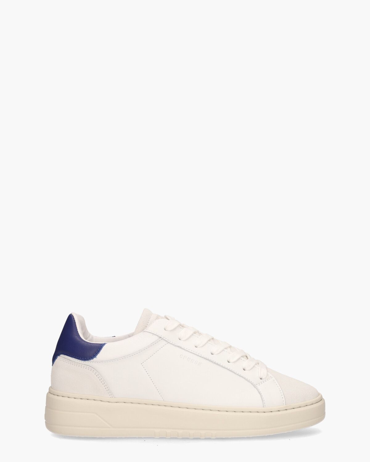 Stap in stijl met de heren CPH72M low-top sneakers uit de onmiskenbare collectie van het merk Copenhagen. Deze sneaks hebben een upper van soepel wit leer en off-white suède. Opvallend is de contrasterende hielcap in een donkerblauwe tint. De shoes zijn afgewerkt met sierstiksels. De binnenkant en het uitneembaar voetbed zijn ook volledig in