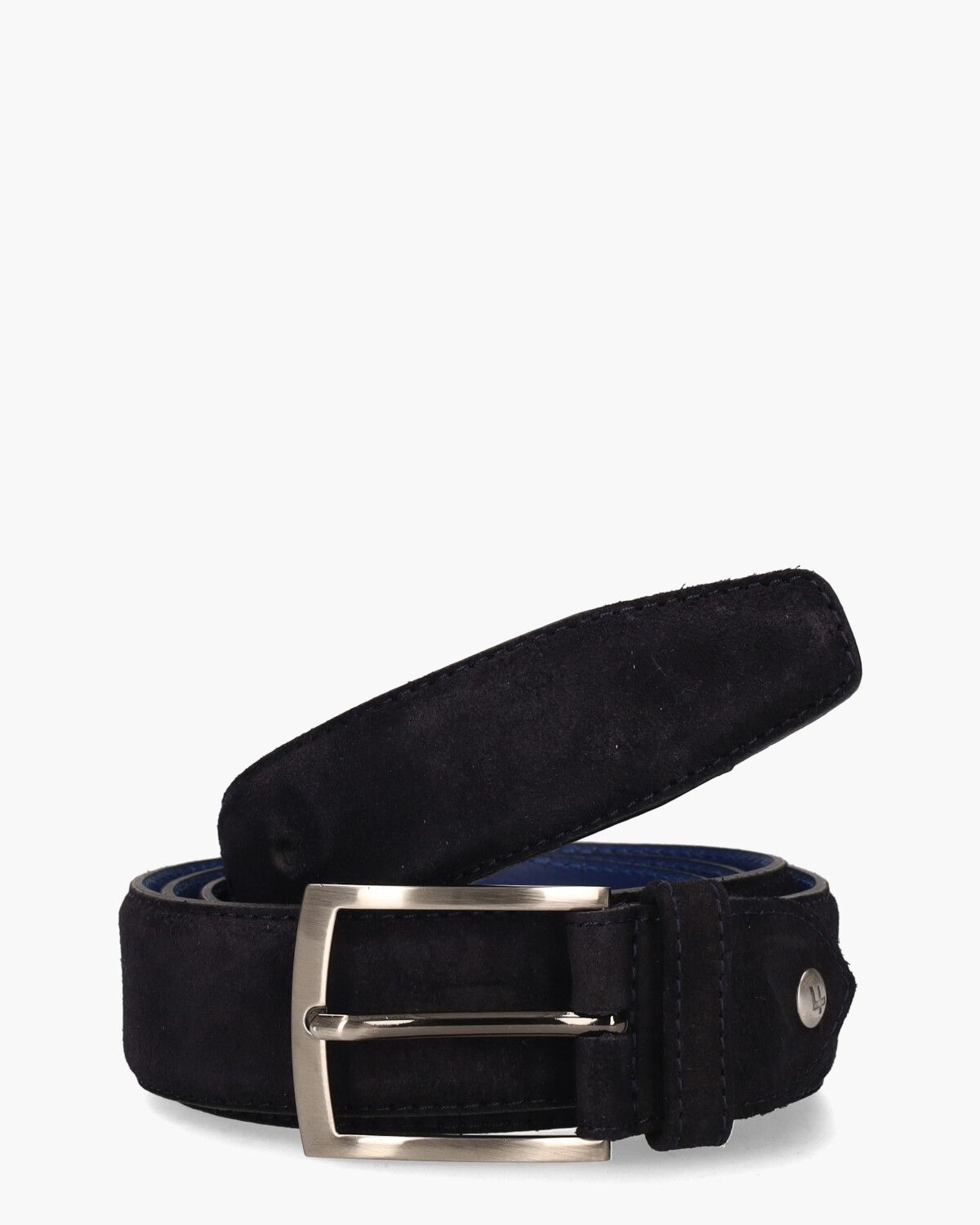 Klassieke donkerblauwe riem De Belter 15.72/CFM-10059-40-07 voor heren uit de collectie van het Nederlandse merk Floris van Bommel. Deze riem is vervaardigd van suède, met een blauwe leren voering aan de binnenkant. De riem is 3,5 cm breed. De finishing touch wordt geleverd door een zilveren gesp en een subtiel metalen Floris van