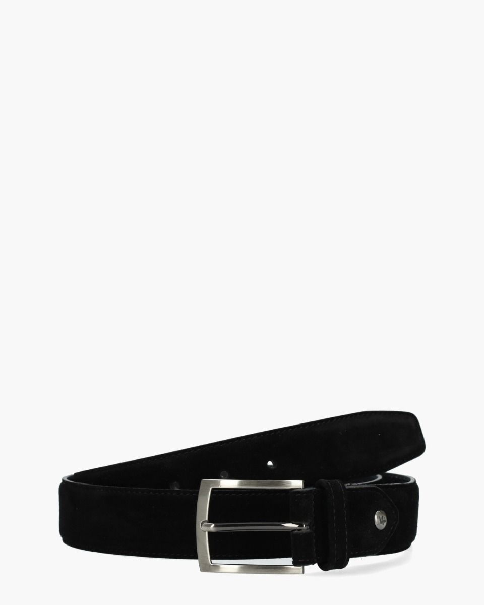 De De Belter 42.04/CFM-10092-10-01 riem van Floris van Bommel straalt pure klasse uit. Het zachte zwarte suède geeft de ceintuur een luxe uitstraling, terwijl de zilverkleurige gesp zorgt voor een moderne afwerking. De riem is 3,5 cm breed en combineert moeiteloos met iedere outfit – van jeans tot chino. Kleur: zwart. (Black) Draag