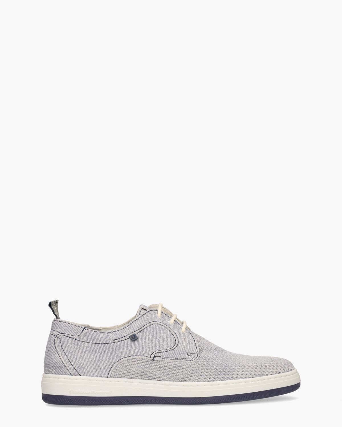 Deze De Dijker 03.03/SFM-30309-42-01 herensneakers van Floris Van Bommel combineren casual stijl met verfijnde details. Het lichtblauwe suède bovenwerk heeft een subtiel geprint patroon en opengewerkte details op de voorvoet, wat zorgt voor een luchtige uitstraling. Opvallend stikwerk en het blauwe rubberen F-logo aan de zijkant geven het