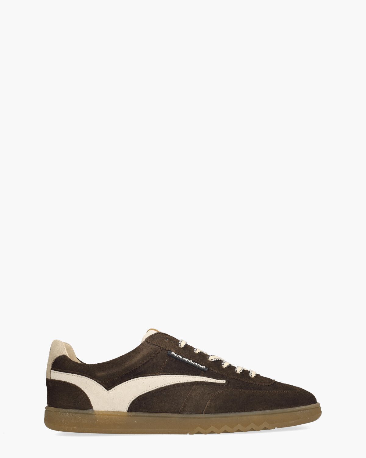 Deze herensneakers met retrolook De Zaler 01.13/SFM-10224-21-01 van Floris van Bommel combineren vintage invloeden met eigentijdse flair. Het donkerbruine suède oogt rijk en robuust, terwijl de contrasterende off-white accenten de schoen een sportieve knipoog geven. De lichtbruine rubberen zool met merkopdruk en zigzagprofiel zorgt voor grip