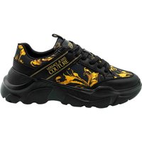 Stap in stijl met de Fondo Speedtrack Sc2 Sneakers van Versace Jeans Couture. Deze modieuze sneakers bieden een perfecte balans tussen comfort en elegantie. De unieke zwart-goude print geeft elke outfit een luxe uitstraling. Door de hoogwaardige materialen zoals kunstleer en textiel kun je rekenen op duurzaamheid en comfort bij iedere stap.