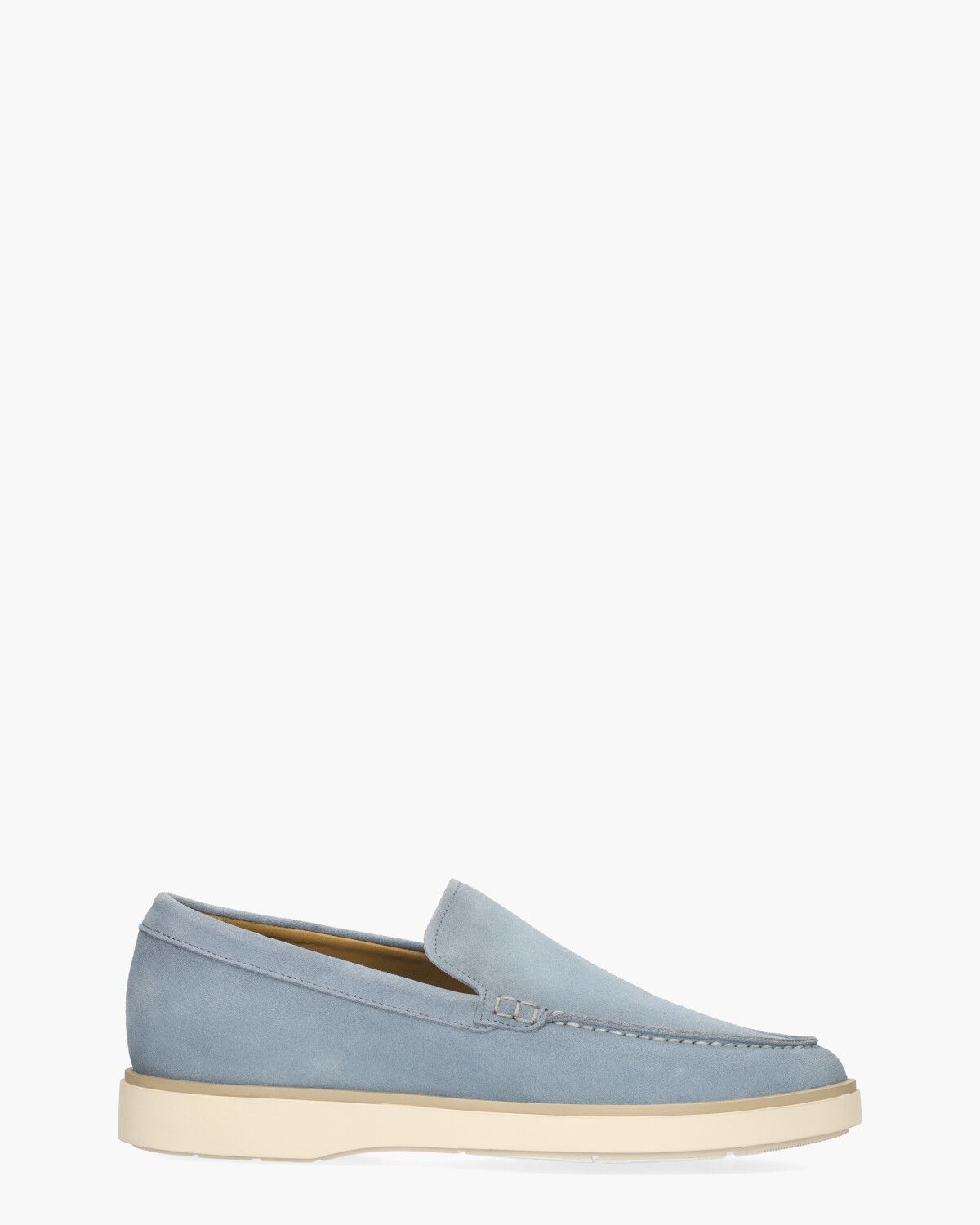 Deze 56402 herenloafers van Giorgio1958 stralen tijdloze elegantie uit in lichtblauw suède. De verfijnde mocassinstiksels onderstrepen de klassieke loaferstijl, terwijl de gebroken witte rubberen zool met een lichtbruin accent een sportieve twist geven. Binnenin zorgt de leren voering met een uitneembaar voetbed voor een