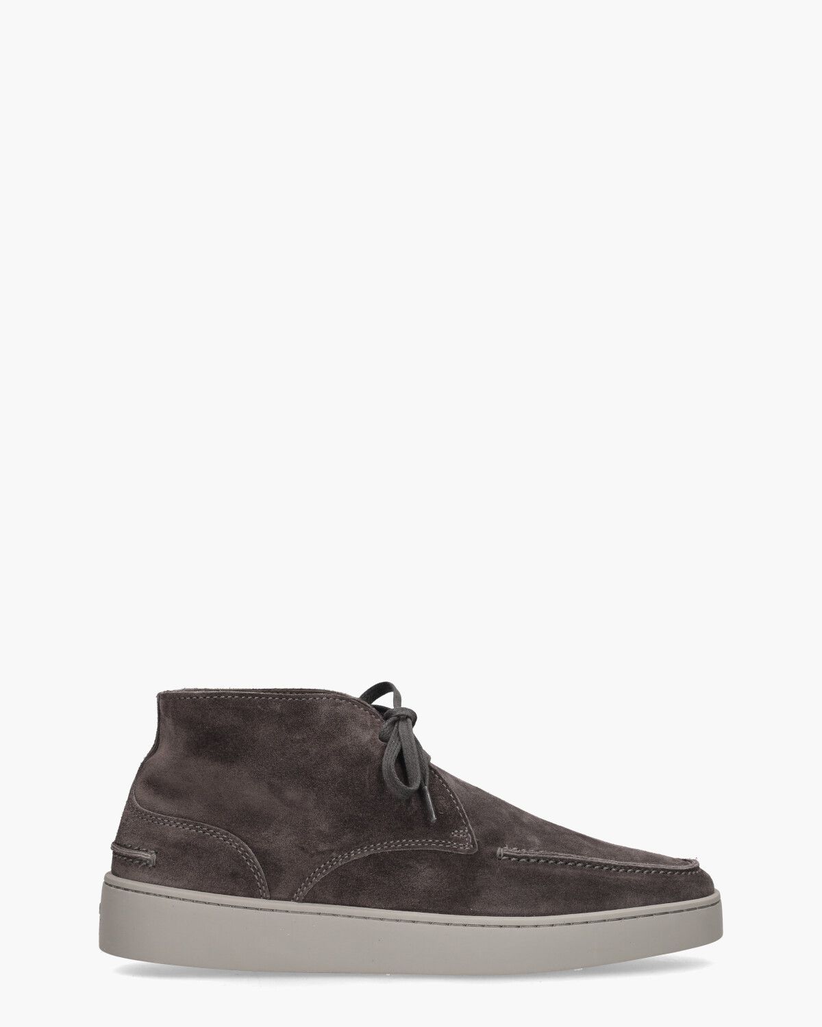 Veterboots voor heren Wave 2525.19 uit de collectie van Greve. Dit model heeft een upper van zacht suède in een donkergrijze tint. De binnenkant is van soft leer gemaakt en voorzien van een uitneembaar voetbed. De opgestikte rand op de wreef en de hiel geven de boots een klassieke mocassin-look. De schoenen hebben een soepele lichtgrijze
