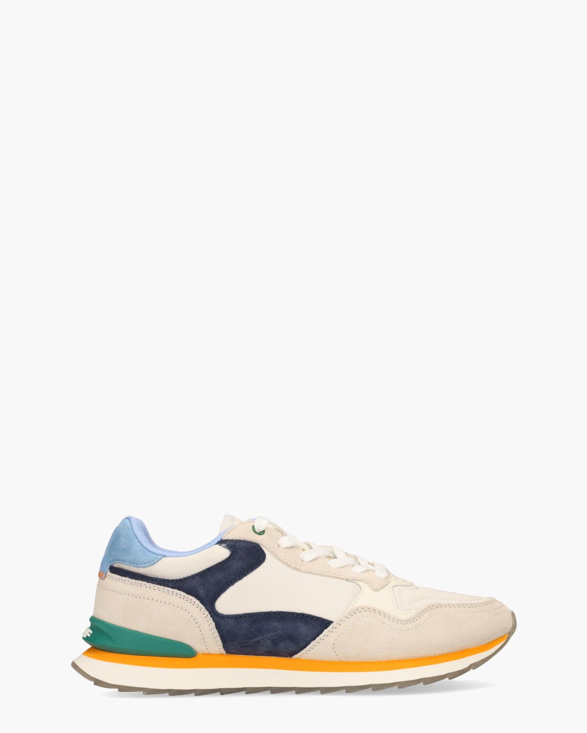 Multicolor sneakers voor heren, model Cusco, uit de collectie van HOFF. Dit ontwerp combineert leer, nylon scubastof en suède in een kleurenmix van off-white, donkerblauw en lichtblauw, afgewerkt met oranje sierstiksels. De voering van synthetische stof en het uitneembare memory foam-voetbed zorgen voor een uitstekende pasvorm en comfort.