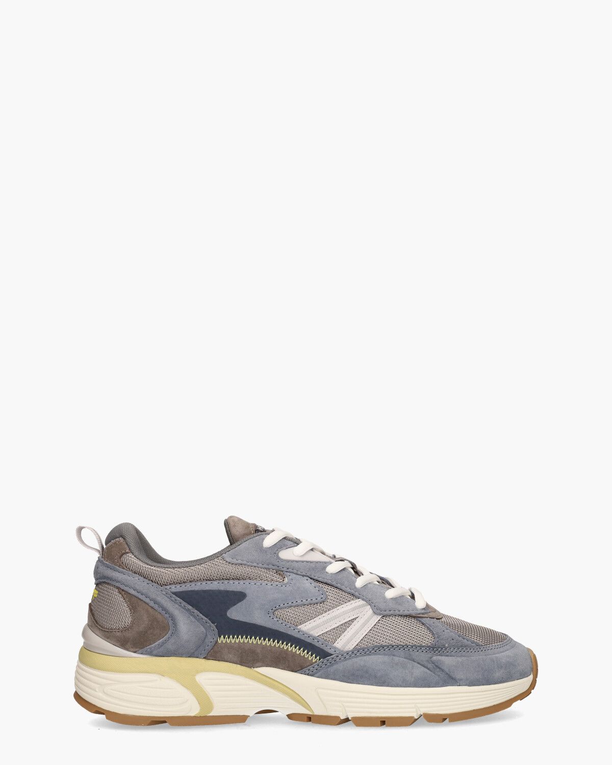 Trendy sneakers voor heren genaamd Minnesota uit de collectie van het sneakerlabel HOFF. Dit model heeft een bovenwerk van suède, mesh en stof in een opvallend kleurenpalet van blauw, taupe en wit, wat zorgt voor een unieke en dynamische uitstraling. De binnenkant is bekleed met zachte badstof en is voorzien van een memory foam uitneembaar