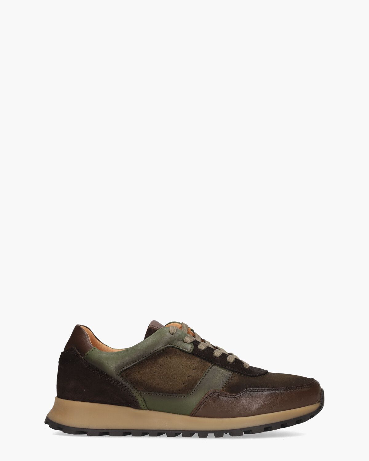 Sneakers voor heren Uriel uit de collectie van het merk CPS by Cypres. Deze sportieve veterschoen heeft een upper van vintage gefinished en gepoetst leer en suède in bruin en groen. De beige rubberen runningzool heeft een zwarte profiel onderzool. De runners zijn uitgerust met een uitneembaar voetbed. Een merklogo op de tong,
