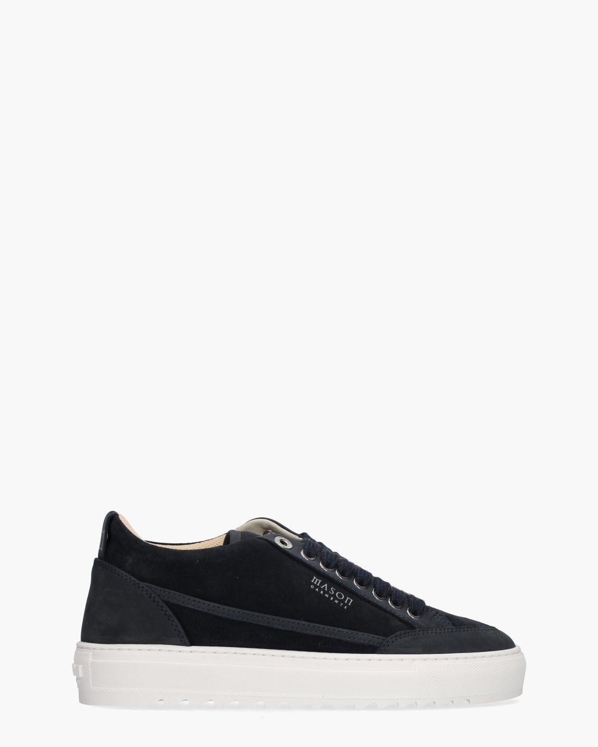 Luxe eenvoud met een sterke afwerking. De Tia Miscuglio 2D sneaker voor heren van Mason Garments draait om balans tussen comfort en uitstraling. Het bovenwerk van donkerblauw suède en nubuck oogt strak en tijdloos, terwijl de sacchetto maakwijze zorgt voor een soepele fit. De leren en stoffen voering voelt zacht aan en zorgt samen