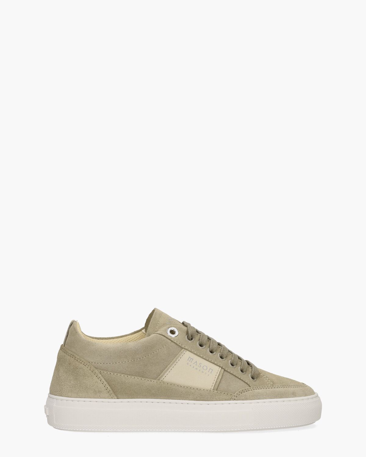 Sportief en verfijnd— de Tia Sport Sarbini 9B van Mason Garments is het allebei. Deze taupekleurige herensneaker valt op door zijn cleane silhouet en ton-sur-ton afwerking in soepel Italiaans suède en nubuck. De combinatie van materialen zorgt voor een luxe gelaagde look. Gewaxte taupe veters en zilveren logo-eyelets geven het model een
