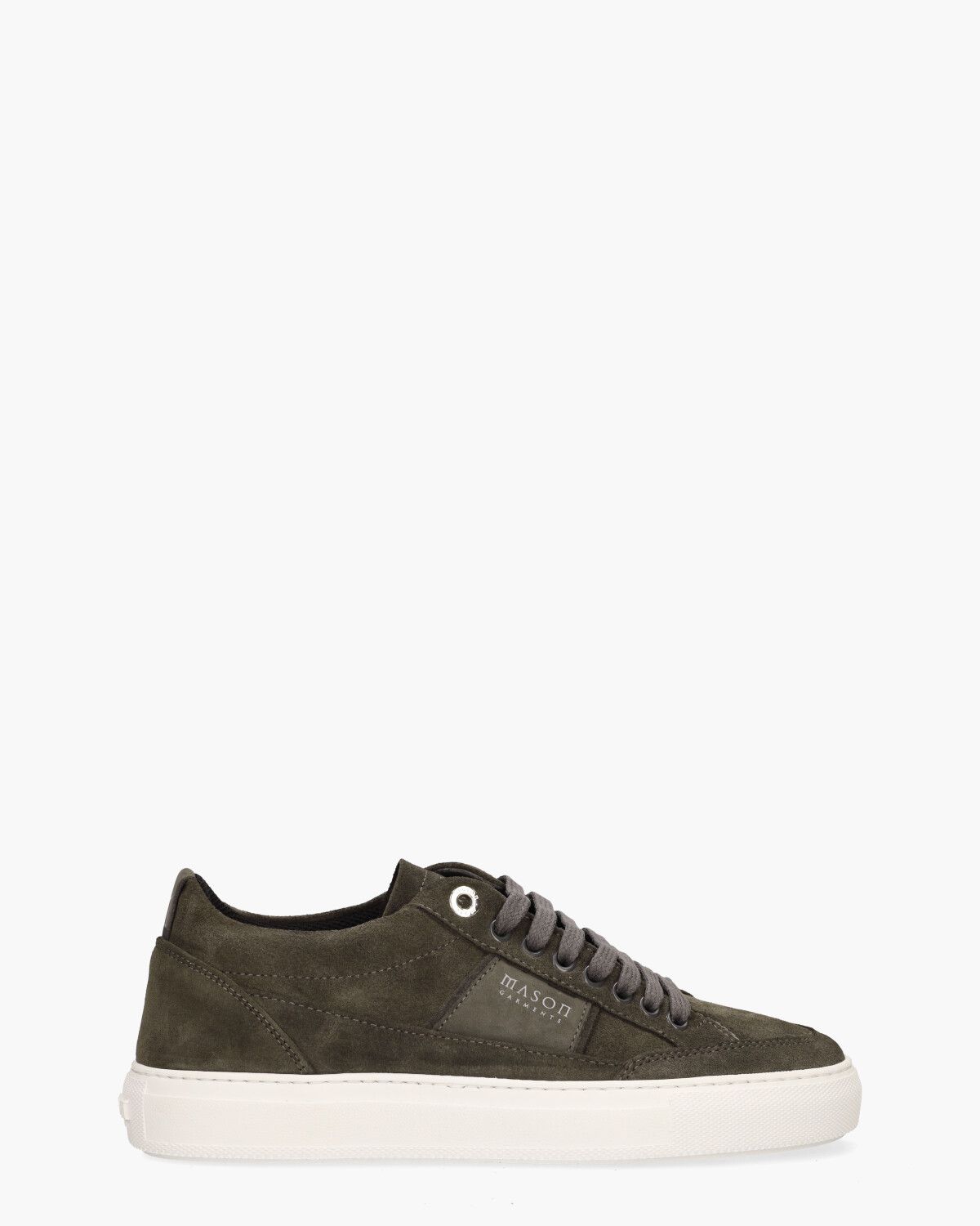 De Tia Sport Sarbini 9C herensneaker van Mason Garments straalt ingetogen klasse uit met een sportieve edge. Het ontwerp valt op door zijn cleane lijnen, diepe donkergrijze kleur en het gebruik van hoogwaardige materialen. Het bovenwerk bestaat uit zacht Italiaans suède en nubuck in ton-sur-ton tinten, wat zorgt voor een luxe, monochrome