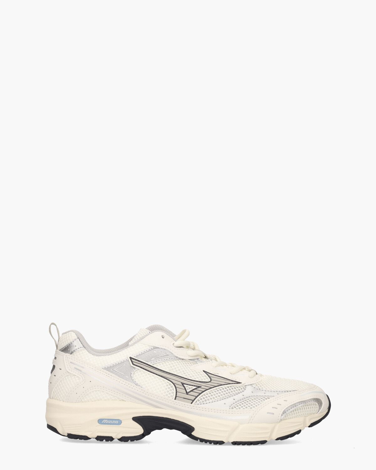 Sneakers voor heren MXR Sport D1GA245103 van het Japanse sportslabel Mizuno. Dit 2000's style technische running model combineert innovatie met stijl en heeft een bovenzijde van ademend mesh en leer in een opvallende mix van wit en zilver. De binnenkant is bekleed met comfortabele stof en voorzien van een vast voetbed. De off-white/zwarte