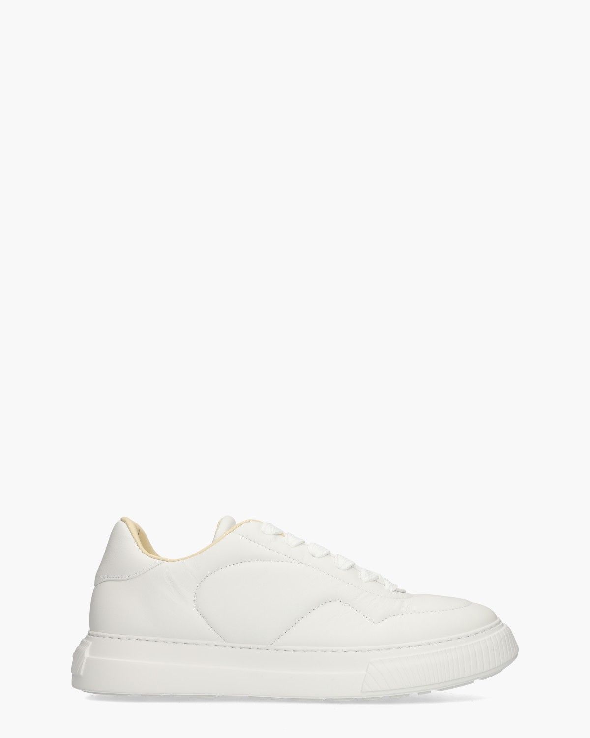 Chunky design met een cleane uitstraling. De NUBIKK Caldera Rush 21089500-30L is uitgevoerd in hoogwaardig wit kalfsleer en valt op door zijn krachtige, blown-up silhouet. De padded zijkanten en ton-sur-ton stiksels geven de sneaker extra body, terwijl subtiele branding op de tong de kenmerkende NUBIKK-stijl laat zien. De zachte