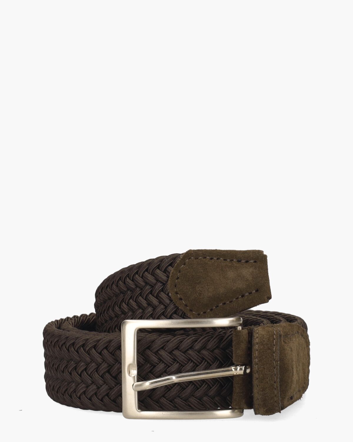 Deze gevlochten Officine Napoli herenriem 1002/35 van hoogwaardig stretchmateriaal biedt optimaal draagcomfort en flexibiliteit. De donkerbruine tint geeft elke outfit een klassieke uitstraling. Met een breedte van 3,5 cm, een stijlvolle metalen gesp en suède details bij de gesp en het uiteinde, combineert deze riem moeiteloos stijl en