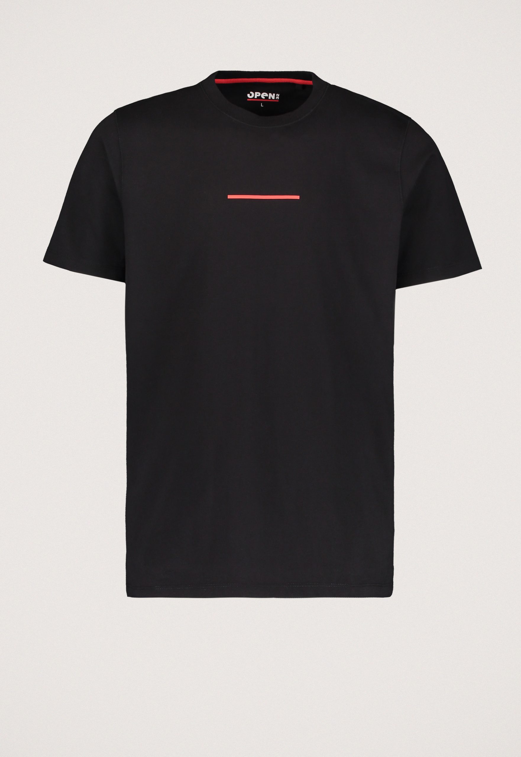 Dit is het OPEN32 MEN T-shirt. Dit T-shirt is speciaal ontworpen voor OPEN32. Het T-shirt heeft een rode streep op de voorkant die verwijst naar de rode streep onder ons OPEN32 logo. Het is niet zomaar een streep, het onderstreept alles waar wij voor staan; Onze passie voor mode, service en onze wil om jou te blijven inspireren. We zullen de rode streep vaker als losstaand beeldmerk gaan gebruiken om iedereen overal te herinneren aan OPEN32. Want bij OPEN32 heb je altijd een streepje voor!