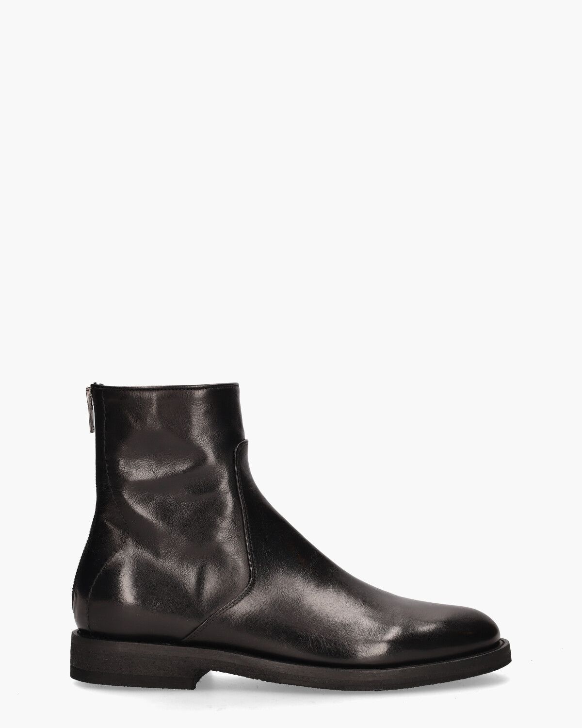 Enkelboots voor heren 16809 van het Italiaanse merk Pantanetti. Deze handgemaakte schoenen met een ronde neus hebben een bovenwerk van soepel en glanzend zwart leer. De binnenzijde is ook in leer uitgevoerd en voorzien van een vast voetbed. De schacht is ongeveer 17 cm hoog. De zool is van rubber gemaakt. De hak meet circa 3 cm.