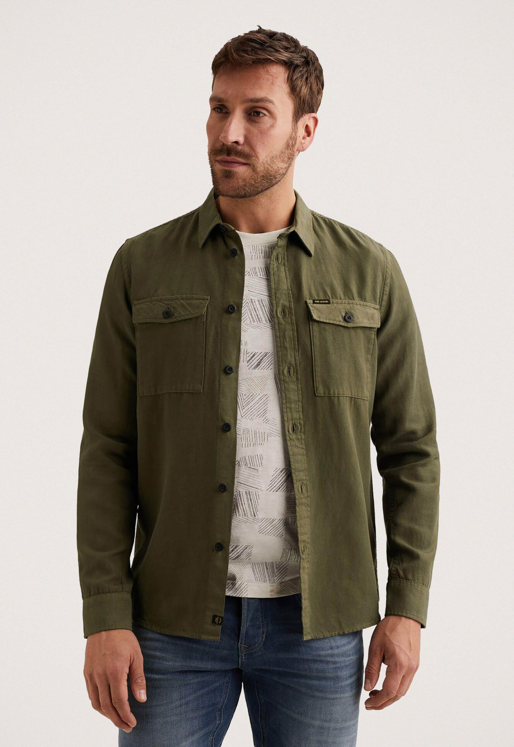 Dit is het PSI2602208 Katoen/Linnen Overhemd van het merk PME Legend. Dit overhemd is gemaakt van een comfortabele katoen/lyocell/linnenblend die zacht aanvoelt op de huid. Het heeft een stijlvolle kent kraag en lange mouwen met verstelbare mouwboorden voorzien van een manchet met twee knopen. Voor extra functionaliteit zijn er twee afsluitbare borstzakken en prachtige stitching details die het design versterken. PME Legend details zoals het logo op de rug en borst maken dit overhemd extra bijzonder.
