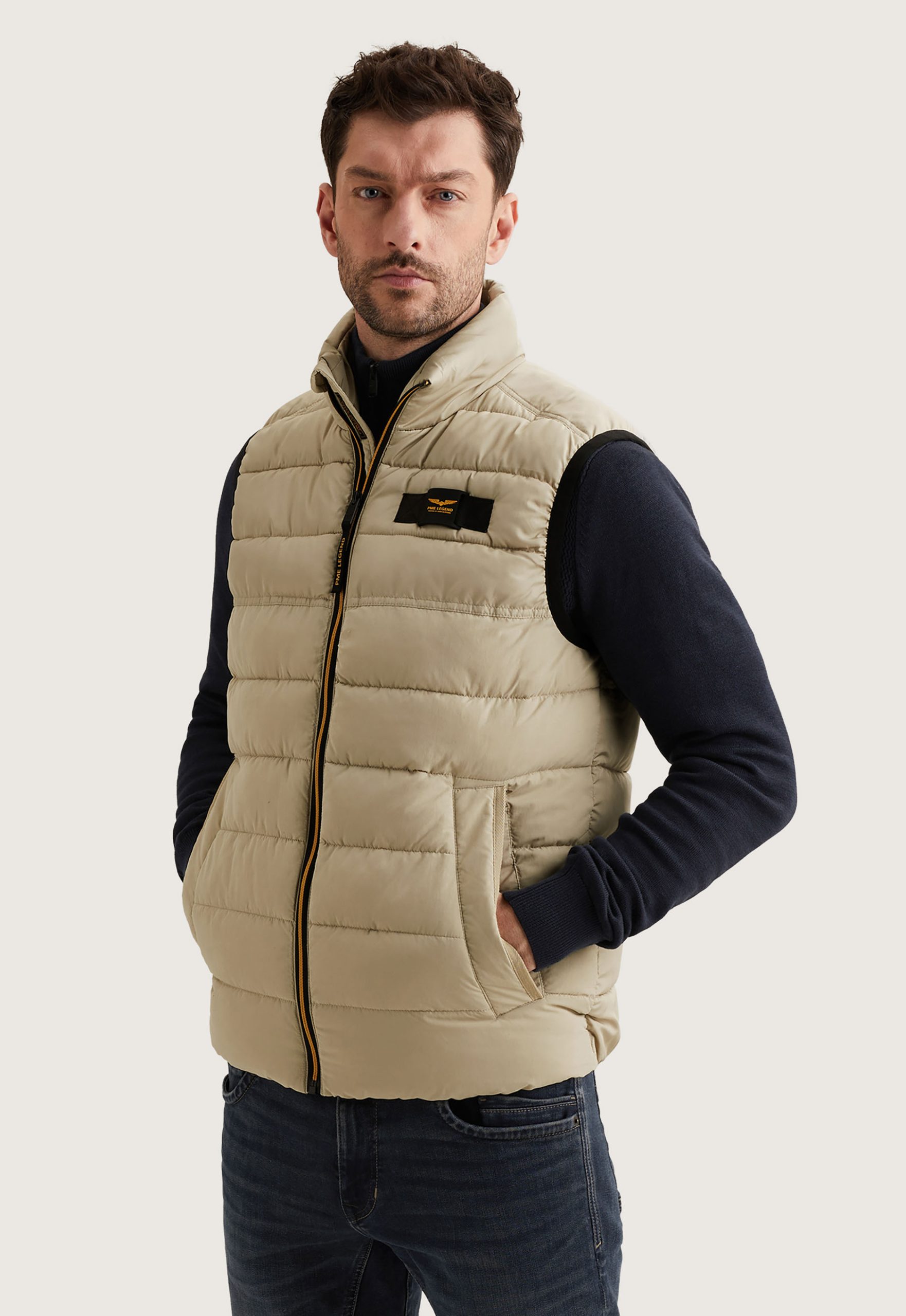 Dit is de PBW2602136 Summer Globber Bodywarmer van het merk PME Legend. Deze bodywarmer heeft een ritssluiting met een windcatcher, ideaal voor bescherming tegen de wind. De jas is gemaakt van een duurzame buitenlaag bestaande uit 94% gerecycled polyester en 6% elastaan, wat zorgt voor een lichtgewicht en stretchy draagervaring. Met een functionele mockneck en drie handige zakken met drukknopen, biedt deze jas zowel stijl als praktische opbergmogelijkheden.
