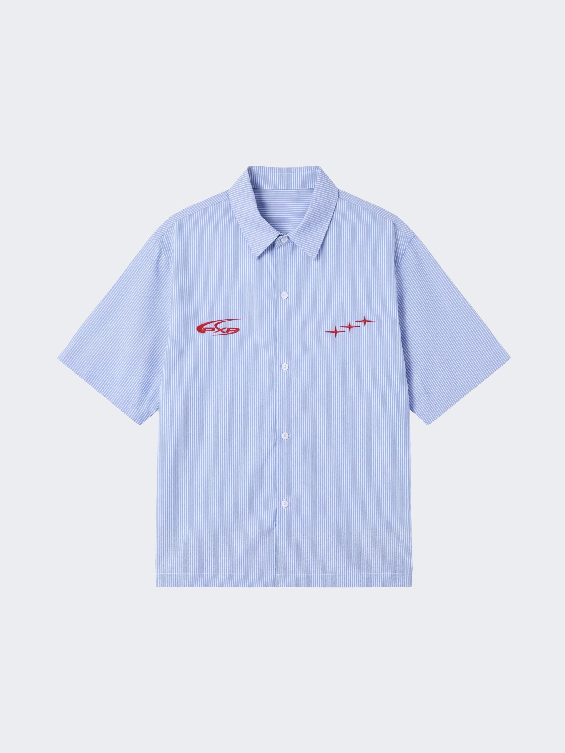 Project X Paris Pin-Stripe Cropped Loose Shirt Blauw