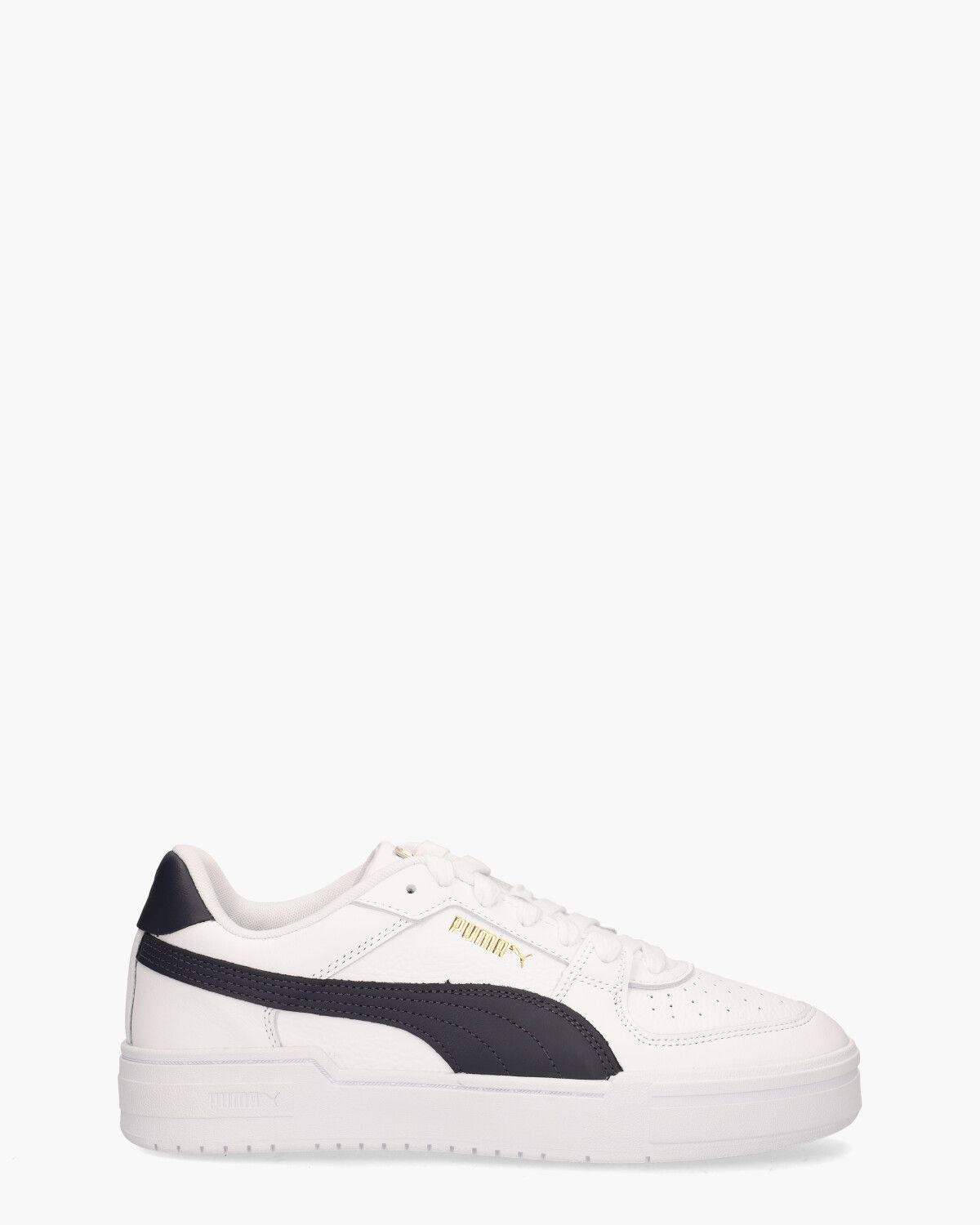 Sneakers voor heren CA Pro Classic 380190-18 uit de collectie van PUMA. Dit toffe model, een nieuwe uitvoering van de klassieke 80's PUMA California, heeft een bovenwerk van wit gerecycled leer. De binnenkant is in stof met een uitneembaar voetbed uitgevoerd. De sneakers vallen op door het donkerblauwe hielstuk en de bijpasende sidestripes,