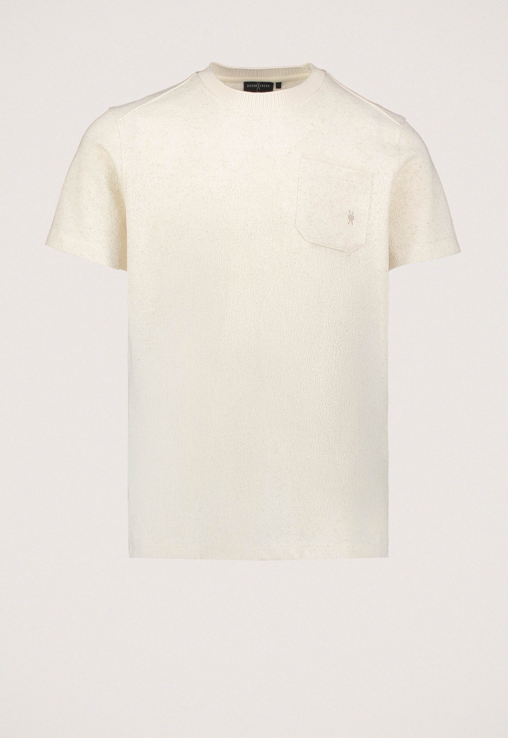 Dit is het Troy T-shirt van het merk Silvercreek. Dit T-shirt heeft een ronde hals en korte mouwen en is gemaakt van 55% katoen, 30% polyester, 10% linnen en 5% elastaan. Het heeft een logo op de borstzak, wat het een opvallend detail maakt.