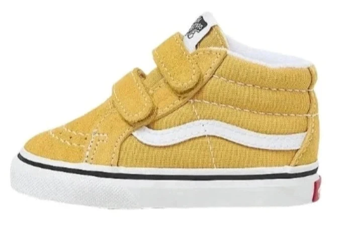 <strong>Vans Sk8-Mid Reissue V Theory Golden Glow</strong>Herontdek de iconische stijl van Vans met de Sk8-Mid Reissue V, speciaal ontworpen voor peuters. Deze halfhoge schoen combineert de legendarische uitstraling van de Sk8-Hi met praktische en kindvriendelijke details. Dankzij de dubbele klittenbandsluiting is deze schoen niet alleen gemakkelijk aan en uit te trekken, maar biedt hij ook een betrouwbare en comfortabele pasvorm voor je kleintje.<br/><ul><li><strong>Iconische Sk8-Hi®-stijl in een halfhoog model:</strong>De vertrouwde look van Vans in een praktische, halfhoge uitvoering.</li><li><strong>Dubbele klittenbandsluiting:</strong>Voor eenvoudig aan- en uittrekken zonder gedoe.</li><li><strong>Verstevigde neus:</strong>Extra duurzaamheid voor actieve kinderen.</li><li><strong>Ondersteunende, gewatteerde kraag:</strong>Zorgt voor extra comfort en ondersteuning rondom de enkel.</li><li><strong>Kenmerkende, rubberen wafelzool:</strong>Biedt uitstekende grip