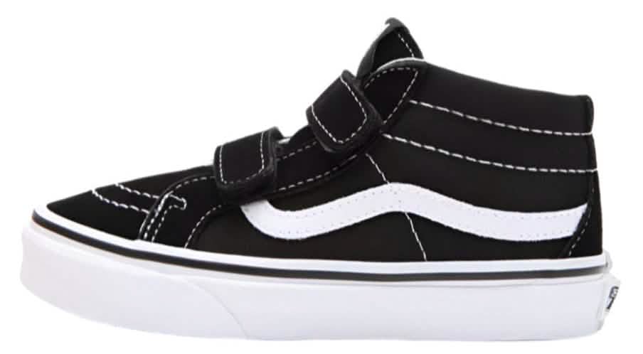 SK8-Mid Reissue V UY Black White<ul><li>De Sk8-Hi Mid Reissue V: een kindvriendelijke interpretatie van de iconische Vans-stijl met handige klittenbandsluitingen.</li><li>Geïnspireerd door het klassieke Sidestripe-ontwerp voor een authentieke uitstraling.</li><li>Het stevige bovenwerk van canvas en suède zorgt voor duurzaamheid en stijl.</li><li>Versterkte neus beschermt tegen slijtage, waardoor de schoen langer meegaat.</li><li>De rubberen wafelzool biedt grip en stabiliteit op verschillende ondergronden.</li><li>Gevoerde kraag en hiel voor comfort, ondersteuning en flexibiliteit tijdens het bewegen.</li></ul>