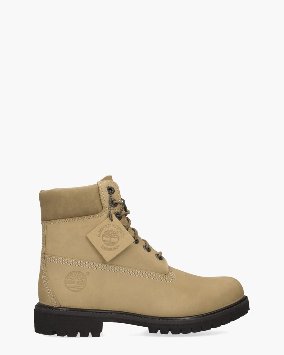 De Timberland Premium 6 Inch Boot TB0A2P6WEN3 voor heren is een iconische veterboot die al jaren het populairste model van Timberland is. De stevige laars heeft een waterdichte nubuck bovenkant en een leren voering. Rond de schacht is de schoen verstevigd met een gepolsterde nubuckleren rand. Op de zijkant en de tong is het Timberland-logo